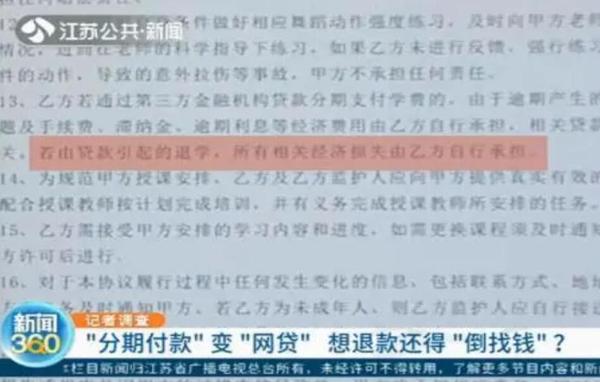 林女士反映自己想报名徐州一家瑜伽培训班,培训机构的工作人员告诉她可以为她办理分期付款,通过工作人员的指导下单后,林女士上了两周的课发现所谓的分期付款实际是网贷!林女士立即想要退款,但培训机构回复她:想退款?要赔偿违约费!